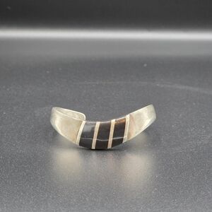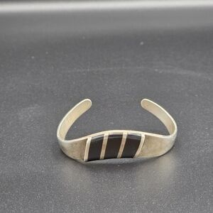 925 Mexico Silver and Onyx Inlay Cuff Bracelet