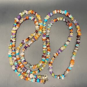 A long strand of gemstone chips with sterling silver clasp.