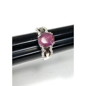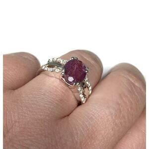 925 PTI India Sterling Silver Ruby Diamonds Ring 6.75 4.17g