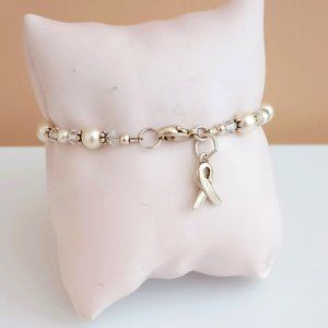 925 Pearl & Crystal Bracelet 7.5" SIC Sterling Silver Breast Cancer Awareness