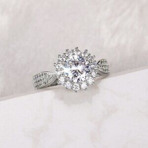 925 Silver Moissanite Carved Sun Flower Wedding/Engagement Ring Women, K754