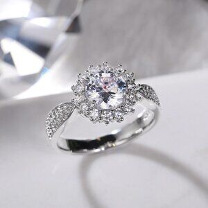 💥925 SILVER MOISSANITE SUN FLOWER WEDDING/ENGAGEMENT RING WOMEN, K754