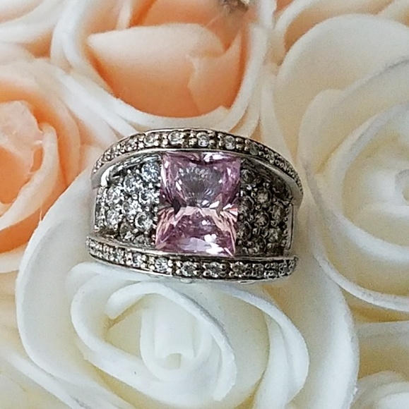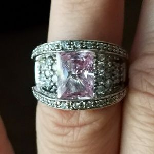 Stunning Amethyst Silver Ring with Sparkling Stones. Size 5