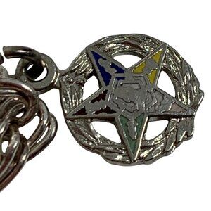 925 S/S Italy Double Chain Link Bracelet Masonic Charm Order of Eastern Star VTG
