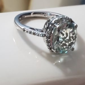 925 SS PRASIOLITE + DIAMOND RING