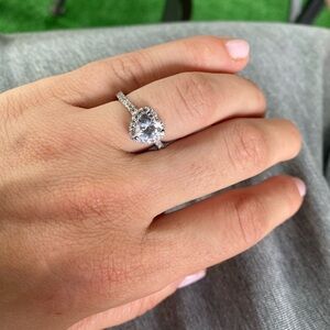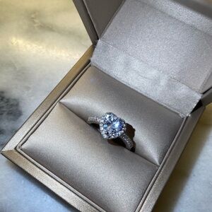 It’s an absolutely stunning ring with the highest grade zirconia, however there is a tiny nick on the band as shown in the photos. It does not affect the wear or overall appearance of the ring.