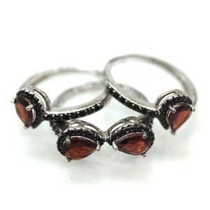 925 STERLING 3 stacking rings ruby red and black CZ's 7.4 grams Size 6 NOS