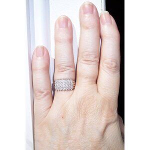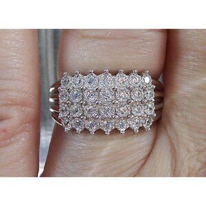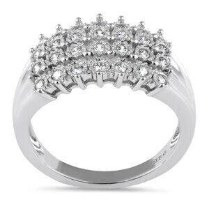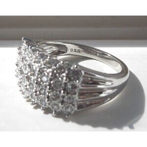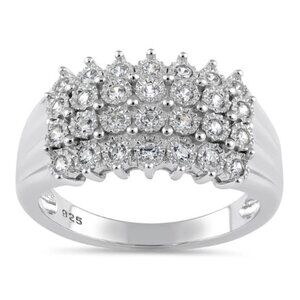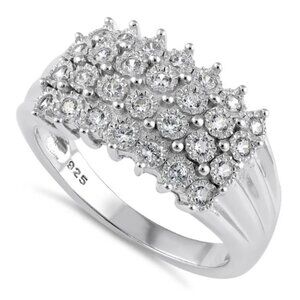 NWOT 925 solid Sterling Silver Ring. This beautiful women's fashion ring has 4 rows of round cut pave set 1.5 (mm) Cz's. It's 11.0 (mm) wide at its widest point, is stamped 925 and has a Rhodium finish for greater shine and durability. If you don't see the size you want please contact me and I will see if I can order one for you, this ring comes in sizes 6-12, no half sizes. Comes from a smoke free home.