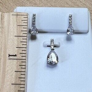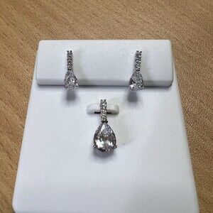 925 STERLING SILVER Cubic Zirconia Stud Earrings and Pendant Rhodium Finish Set