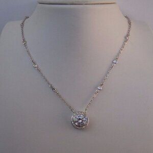 925 STERLING SILVER LADIES DESIGNERS SINGLE STONE WITH ACCENTS NECKLACE PENDANT WITH 4 CARATS OF LAB CREATED / MAN MADE ROUND DIAMOND ...CENTER STONE IS 2.50 CARATS ROUND BRILLIANT CUT..PENDANT SIZE IS 13.2MM IN DIAMETER & CENTER STONE SIZE IS 9MM IN DIAMETER...CHAIN LENGTH 18'' ADJUSTABLE .....TOTAL WEIGHT 4.9 GRAMS..........BREATHTAKING DESIGN THAT HAS A VERY RICH AND ROYAL LOOK......UNIQUE DESIGN WILL OVERWHELM EVERYONE.... ITS A STUNNING LOOKING DESIGNERS PIECE AT INCREDIBLE SAVINGS...BGN00006... RETAILS OVER $ 199.00....... GORGEOUS NECKLACE PENDANT AT AMAZING PRICE!!!!!!