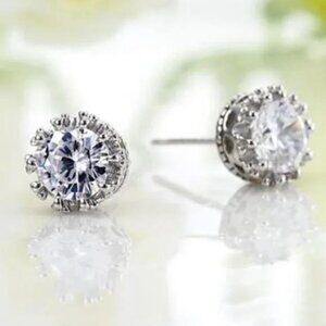 925 STERLING SILVER DIAMOND CROWN EARRINGS, BEAUTIFUL EARRINGS, CUTE EARRINGS.