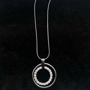 925 STERLING SILVER DOUBLE ROUNDEL CZ PENDANT NECKLACE