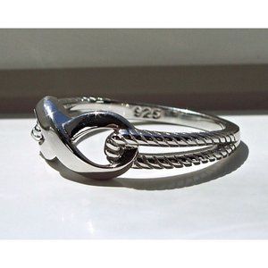 NWOT 925 solid Sterling Silver Ring. This cute little women's fashion ring is an Infinity design with a rope split shank. It's 6 (mm) wide at it's widest point, is stamped 925 and has a Rhodium finish for greater shine and durability. If you don't see the size you want please contact me and I will see if I can order one for you, this ring comes in sizes 3-14, no half sizes. Comes from a smoke free home.