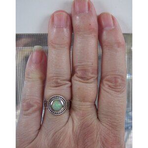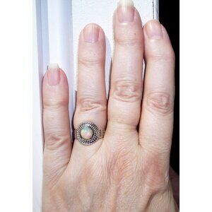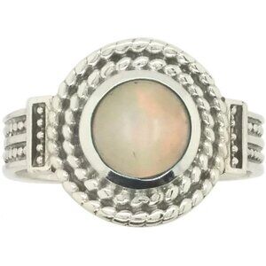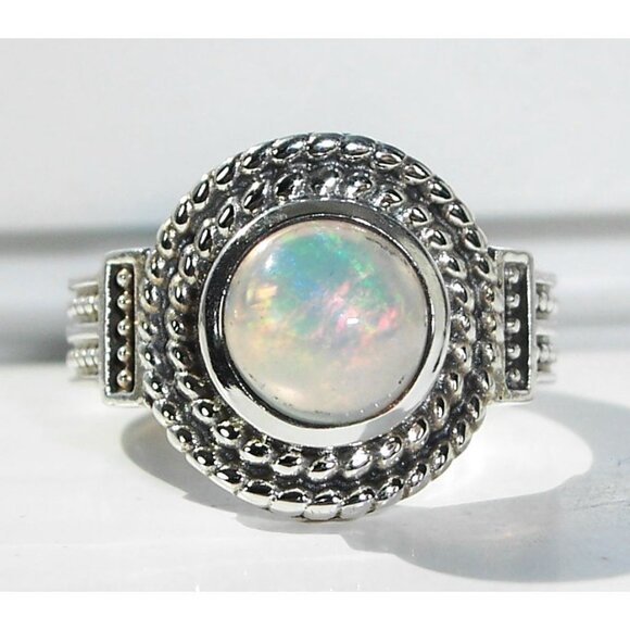 NWOT 925 solid Sterling Silver Ring, sizes 7 and 8. This beautiful women's fashion ring has a round genuine Ethiopian Opal in the center, with pretty rope design around it. It's 15 (mm) wide at its widest point, is stamped 925 and has a Rhodium finish for greater shine and durability. If you don't see the size you want please contact me and I will see if I can order one for you, this ring comes in sizes 5-10, no half sizes. Comes from a smoke free home.