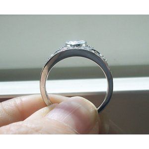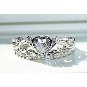 NWOT 925 solid Sterling Silver Ring. This beautiful women's fashion ring is a crown design with a heart in the center and clear CZ stones. The bezel set heart stone is 5.5 (mm), 0.6 carats. It's 8.8 (mm) wide at its widest point, is stamped 925 and has a Rhodium finish for greater shine and durability. If you don't see the size you want please contact me and I will see if I can order one for you, this ring comes in sizes 4-13 no half sizes. Comes from a smoke free home.
