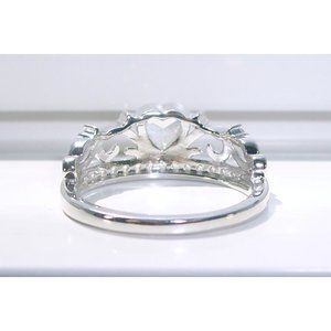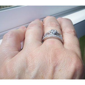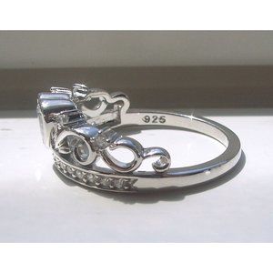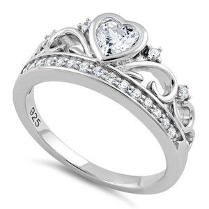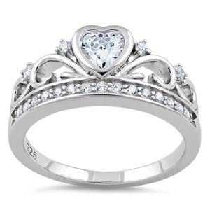 925 STERLING SILVER Heart Crown Tiara Cubic Zirconia Ring