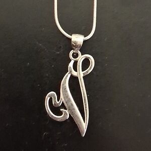 925 STERLING SILVER INITIAL V PENDANT. THE V IS A CURSIVE LETTER AND A VERY DAINTY PENDANT.. APPROXIMATE MEASUREMENTS LENGTH 1 1/4" AND WIDTH 1/2". IF YOU HAVE ANY QUESTIONS, PLEASE ASK B4 PURCHASING. 12/23