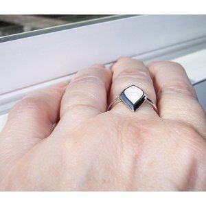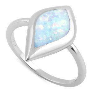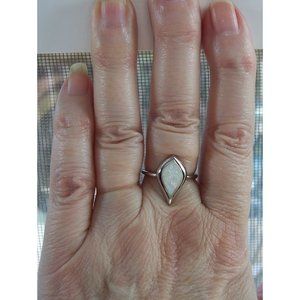NWOT 925 solid Sterling Silver Ring, size 7. This unique women's fashion ring has an inlaid lab created white opal. It's 17.9 (mm) long, is stamped 925 and has a Rhodium finish for greater shine and durability. This is a lightweight ring. If you don't see the size you want please contact me and I will see if I can order one for you, this ring comes in sizes 4-10, no half sizes. Comes from a smoke free home.
