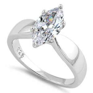 NWOT 925 solid Sterling Silver Ring, size 6, 7, 8, no half sizes. The beautiful women's fashion ring has a clear 6x12 (mm), 1.6 carat marquise cut solitaire Cubic Zirconia stone. Its stamped 925 and has a Rhodium finish for greater shine and durability. If you don't see the size you want please contact me and I will see if I can order one for you, this ring comes in sizes 4-10, no half sizes. Comes from a smoke free home.