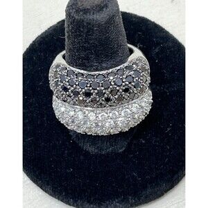925 STERLING SILVER PAVÉ SET CZ DOUBLE BAND RING, SIZE 6.25 - Regency Mob Wife