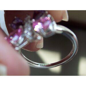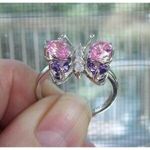 NWOT 925 solid Sterling Silver Ring, The adorable women's fashion ring is a butterfly with simulated Amethyst and Pink Sapphire. Has clear CZ's down the middle. The Butterfly is 16 mm tall and 17 mm wide. Its stamped 925 and has a Rhodium finish for greater shine and durability. If you don't see the size you want please contact me and I will see if I can order one for you, this ring comes in sizes 4-11, no half sizes. Comes from a smoke free home.