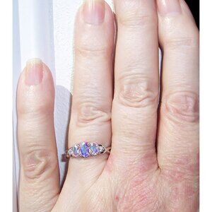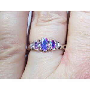 NWOT 925 solid Sterling Silver Ring. This dainty little women's fashion ring has 3 oval cut simulated Mercury Mystic CZ's with 2 clear round cut CZ's on each side. The center stone is 6x4 (mm), 0.4 carats. Its 8 (mm) wide at its widest point, is stamped 925 and has a Rhodium finish for greater shine and durability. If you don't see the size you want please contact me and I will see if I can order one for you, this ring is available in sizes 3-11, no half sizes. Comes from a smoke free home.