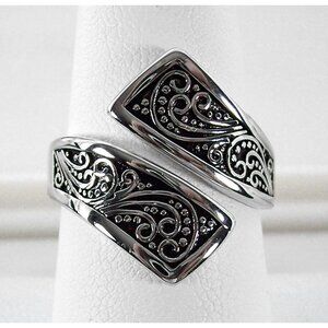 NWOT 925 solid Sterling Silver Ring, sizes 8, 9, 10. This unique Bali women's fashion ring is a bypass design with swirls. It's 19.9 (mm) wide at the widest point, is stamped 925 and has a Rhodium finish for greater shine and durability. If you don't see the size you want please contact me and I will see if I can order one for you, this ring comes in sizes 5-13, no half sizes. Comes from a smoke free home.
