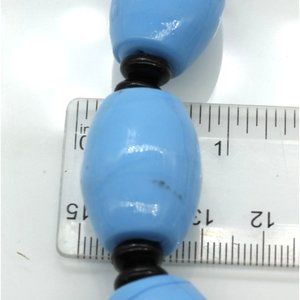 Sky blue 1" barrel beads with round black bead chain.
