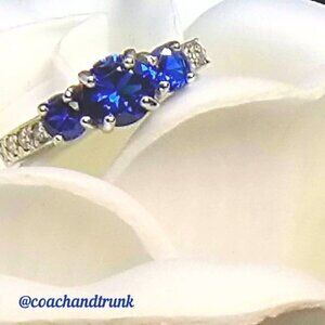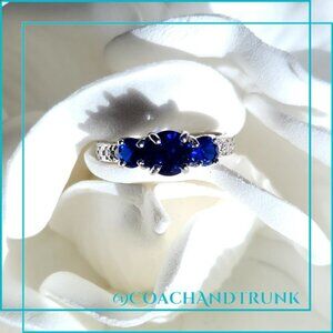 925 Sapphire Trinity Ring Channel Set White CZ STERLING SILVER NWT