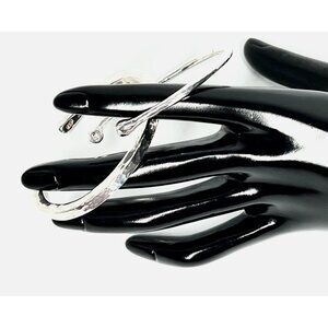 925 Signed Hammered Silver Cuff Bracelets Set Adjustable Unisex Boho Jewelry