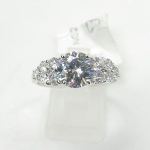Glamorous 1.25 carrot 5A grade Round cut CZ diamond displayed in a stunning bouquet of medium 5A grade Round cut CZ diamonds in a Sterling Silver 925 Band. Shipped in a small jewelry box.