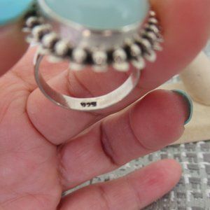 925 Silver 15mm Oval Chalcedony Cocktail Ring Sz 6