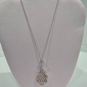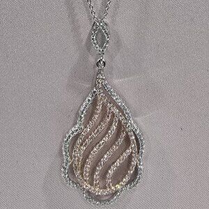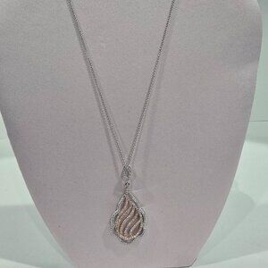 ✅ 925 Silver 2-Tone Rose & White Gold CZ Drop Pave Diamond Pendant + 18" Chain