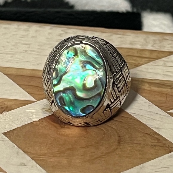 Stunning 925 silver ring featuring a vibrant abalone shell. Unique design with intricate details. Absolutely gorgeous ring size 7