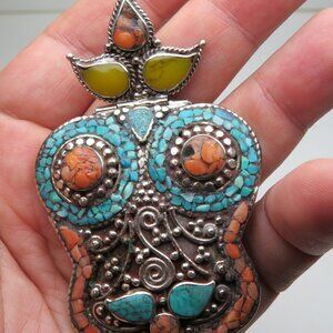 *925 Silver Antique Tibetan Coral Turquoise Pendant