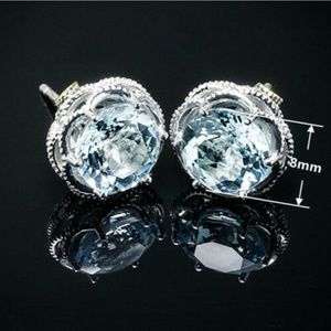 925 Silver Aquamarine Flower Stud Earrings, wonderful Earrings, wow Earrings