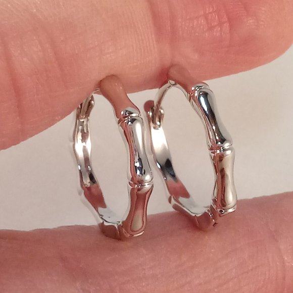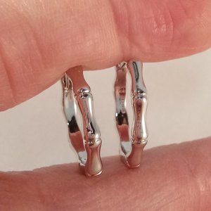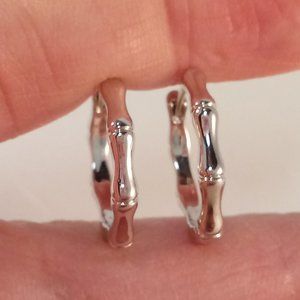 Beautifully crafted classic design bone or bamboo shape hoop earrings 925 silver plated. Fine quality, high polished shine, brand new, never been worn. Lead, nickel free. These earrings sparkle.