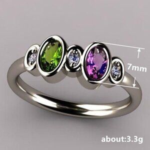💥 925 Silver Color Imitate Zircon Colorful CZ Rings for Women, HA4463-6