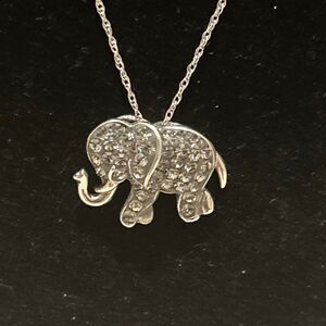 925 Silver Crystal Rhinestone Elephant Charm Pendant Chain Necklace 18" New