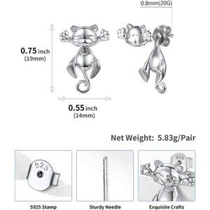 925 Silver Cute Pig/Panda Bear/Dog/Cat Earrings Stud Solid Sterling Jewelry "
