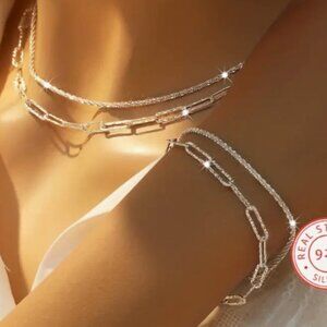 925 Silver Double Bracelet & Necklace 925 Paperclip & Twisted Glitter NWT