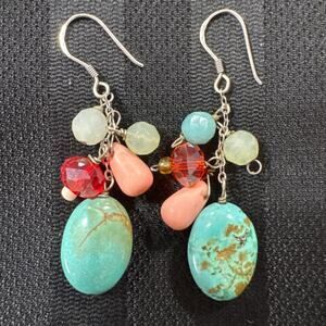 925 Silver, Faux Turquoise, Maybe Agate and Beads Dangle Earrings
