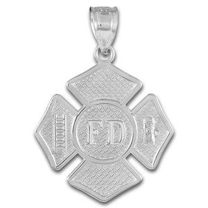 925 Silver Fire Department Firefighter Badge Pendant Necklace