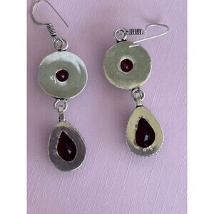 Pretty Dangle Garnet and Pink Topaz Earrings with 2 stones