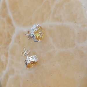 925 Silver Gold Tone Citrine Oval Faceted Crystal Earrings
