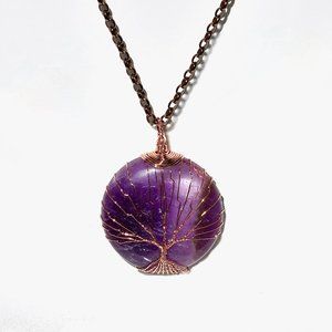 * Natural Amethyst Large Rounded Pendant wrapped in copper wire