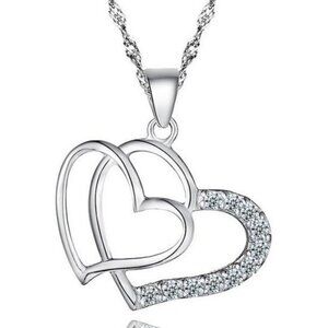 925 Silver Love Charm Exaggerated Double Heart Necklace
