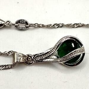 925 Silver Necklace W/ Green Lab Emerald Teardrop Pendant Anniversary Birthday