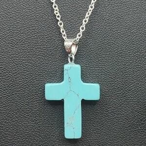 925 Silver Necklace W/ Turquoise Cross Pendant Western Native Christian Gift