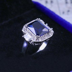 🎁925 Silver Plated Big Blue Cubic Zirconia Ring for Women, MLNN1001